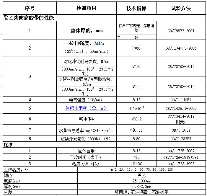 該產品基材為獨特的改性聚丙烯增強編織纖維布,采用丁基橡膠改性瀝青做防腐膠層。其基材是纖維結構可有效地抵抗由于土壤應力而產生的蠕變破壞,經老化試驗檢測證明其耐蝕時間達30年以上,各項檢測指標符合SY/T 0414-2017標準要求, 完全達到ANSI/AWWAC20W00和NACEMR0274-95指標。是管道冷防腐施工膠帶中的優先選擇,也是防腐經濟的選擇。